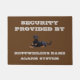 La natte de chien de rottweiler pour des propriétaires de Rottie indique la "sécurité fournie par" au dessus dans le gris pâle, rétro style sportif, lettrage audacieux. Le fond a personnalisé le nom du chien et lit le "système d'alarme" au fond. Photo de chien vigilant de rottweiler au centre. Arrière - plan Brown. La couleur d'arrière - plan et le style des textes, la couleur, ou la taille peuvent être changés. Soyez cadeau parfait de pendaison de crémaillère pour le propriétaire de rottweiler ou cadeau mignon pour le nouveau propriétaire d'un chiot de Rottie. Nous avons le décor à la maison coordonné de rottweiler et d'autres cadeaux d'amoureux des chiens de rottweiler dans notre Zazzle.com/angela65* font des emplettes.