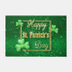 Illustration glamour de la Saint-Patrick à la parties scintillant dorée élégante avec typographie en or 3d à l'intérieur d'une bordure en parties scintillant dorée avec un élégant trèfle shamrock sur un précieux arrière - plan vert.