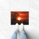 Stupéfiant la composition de retour allumée de photo des girafes et du rhinocéros silhouettée contre le coucher de soleil.