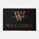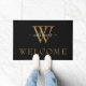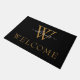 Paillasson Simple Black Gold White Script Monogramme Bienvenu