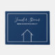 Ce tapis de porte de courtier moderne est la façon parfaite de commercialiser lors d'une maison ouverte. Personnalisez avec votre nom d'agent immobilier et votre entreprise sur le design chic et minimaliste bleu marine et blanc d'un simple dessin de ligne d'une maison.