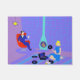 Cette soirée rétro au Home Door Mat ressemble à une scène d'une comédie romantique des années 60. Le design minimaliste présente un beau couple de dessins animés dans le salon d'une maison moderne du milieu du siècle. La pièce est bien visible avec un mur en pierre violet et bleu et un tapis rayé violet et bleu assorti. Contre le mur, une cheminée turquoise en forme de cône avec un feu rugissant. Dans le coin, l'homme suave de la maison se dort dans une chaise d'oeuf rouge. Il porte un costume bleu avec une cravate bleue. D'un côté, il tient un verre à martini. Pas étonnant qu'il soit si détendu ! Accroché au plafond, il y a un luminaire Spoutnik jaune. Une femme avec une silhouette en sablier est assise sur le tapis. Elle porte une robe bleue vibrante et pas un cheveu n'est pas à sa place dans sa blonde flippante "do". A côté d'elle, sur le sol, il y a un lecteur portable bleu et noir. Plusieurs albums de disques vinyles sont éparpillés près du magnifique deejay. Vas-y et chante. Tu sais que tu veux !