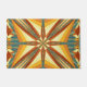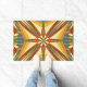 Tapis de portes imprimé avec Golden Indian Summer Sunset avec l'image design de TheFabricSeal à Zazzle est un magnifique art créatif répétitif motif abstrait représentant de magnifiques rayons de soleil de deuxième été avec le dynamique désert du sud-ouest et l'art indien américain et des couleurs avec bleu turquoise et vert, jaune, orange, rouge, marron et palette de couleur crème.