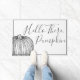 Obtenez une chute vintage chercher votre entrée! Cette ferme rustique de style gris et blanc porte a les mots "Hello There, Citrouille" dans un mince script de balayage. L'illustration détaillée du citrouille donne un look vintage et élégant au thème de l'automne.