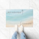 Soft coastal tones and a flowing wave-inspired gradient keep the design elevated and uncluttered, allowing the message to feel intuitive without the need for icons or instructions. Ideal for Airbnb and short-term rental entryways, this mat balances personality with thoughtful function and blends seamlessly into relaxed coastal interiors.