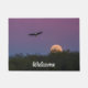 Tapis de bienvenue représentant un pygargue à tête blanche volant devant et à côté de la belle et brillante pleine lune rose supermoon le 7 avril 2020 juste au-dessus du lac Springfield à Springfield dans le Missouri, États-Unis. Vous cherchez plus d'impressions ou de produits ? N'hésitez pas à visiter ma boutique : http://www.zazzle.com/timelessmomentsphtgy