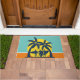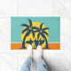 Sympa graphique de la scène de plage avec palmiers, surfeurs et soleil. Idéal pour un amoureux du surf.