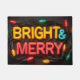 Un accueil de vacances gai et dynamique avec les mots "BRIGHT & MERRY" dans un texte coloré et brillant de style néon. L'enseigne illuminée est encadrée d'un chapelet de lumières de Noël classiques multicolores, contre un arrière - plan sombre, créant une atmosphère festive et festive.