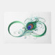 Symbole de l'infini avec une plume de paon artistique, verte et vive sur un arrière - plan blanc. Style tatouage.