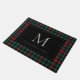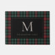 Ajoutez une touche festive à votre entrée grâce à cet élégant tapis à motifs écossais en rouge et vert de Noël. Personnalisez avec votre monogramme initial unique au centre, et votre nom de famille en dessous.