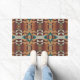 Paillasson Taupe Brown Orange Turquoise Bleu Vert Tribal Art