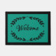 Cette conception bienvenue de sarcelle d'hiver et de natte de noir a un centre turquoise de vert bleu avec une conception feuillue de motif et l'accueil de mot dans une police décorative avec une frontière noire.