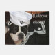 Le terrier noir et blanc de Boston avec le "accueil à bord" du message, chien utilise l'équipement de marin. Sentez-vous svp libre pour ajouter, changer, ou enlever le texte si vous aimez.