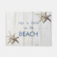 Cette conception estivale présente une belle image d'un rivage de plage avec sable, mer, ciel, et un message de motivation.