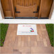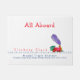 Accueillez vos invités modèles d'affaires de train avec ce tout à bord du train de Choo Choo fonctionnant en bas du tapis de porte de voies. Claquement de Clickety qu'il se déplace rapidement. Une locomotive à vapeur rouge et verte illustrée colorée avec la vapeur pourpre se soulevant de elle est cheminée d'évacuation des fumées. Ajoutez votre information dans les domaines fournis.