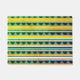 Bleu et jaune rayures et triangles.