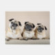 Trois Carlins côte à côte et tous inclinant la tête de la même manière.
