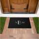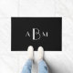 Porte de bienvenue avec trois monogrammes initiaux blancs sur un arrière - plan noir. Personnalisez avec votre trois monogramme initial en utilisant les modèles faciles. La couleur de police, le style de police, la taille de police et la couleur arrière - plan sont personnalisables.