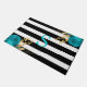 Paillasson Turquoise Or Floral Monogramme Noir Blancs