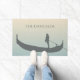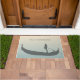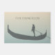 Ajoutez une touche personnalisée au style vénitien à votre entrée. Ce paillasson ou tapis de bienvenue a une silhouette d'illustration d'un gondole et d'une gondole en gris dressé contre un arrière - plan couleur coucher de soleil de jaune or clair et bleu clair. Le lettrage gris est prêt à être personnalisé avec un nom ou un autre texte.