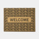 Tapis de porte à motif de fleur de ventilateur d'art or et noir. Le design comporte un motif de fleur de ventilateur extensible en or et noir et une forme d'or au milieu avec le texte "Welcome". Le texte est personnalisable. 1920s Gatsby motif style.