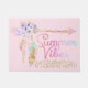 Fille rose vif et or boho plume floral fleur Summer Vibes mat de porte. Ce joli tapis porte les mots "Summer Vibes" en rose chaud, violet et aqua, avec des confettis étincelants à la parties scintillant d'or. Ce tapis porte également une flèche de plume de sauce boho dorée, rose, lilas, violette, bleue et turquoise.
