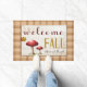 Ajoutez une touche de chute avec notre tapis de porte orné de "Welcome Fall" en police scriptée sur un plaid orange et arrière - plan en bois avec de mignons champignons et des feuilles. Ajoutez votre nom ou votre message. Découvrez tous nos décors de vacances dans notre boutique Zazzle !