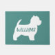 West Highland White Terrier Silhouette Style rustique Mat de bienvenue. Personnalisez avec votre nom de famille, Bienvenue ou supprimez le texte par défaut si vous ne préférez aucun texte. Ce design Westie turquoise et blanc fait un cadeau merveilleux pour les nouveaux propriétaires de maisons, les jeunes mariés, les papas de chien, les mamans de chien et toute personne qui aime leurs animaux de compagnie comme la famille. Ce mignon format amoureux des chiens est disponible dans une variété de choix de couleurs. Visitez le Doodle World de Jenn pour encore plus de portières de race de chien et la décoration de la maison des amoureux de Westie.