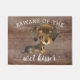 Méfiez-vous du baiser mouillé" Dachshund chiot tapis porte chien dressé sur un faux arrière - plan rustique. Visitez notre boutique pour voir un large assortiment de pains pour chiens