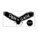 A majestic eagle, soaring high with its wings outstretched. The eagle's gaze is fierce and determined, symbolizing strength and perseverance.Text: "Pain is Gain" is inscribed in bold, sans-serif font beneath the eagle. The text is positioned horizontally and centred below the image.Size: The stamp is approximately 2 inches by 1 inch.Colour: The eagle and the text are imprinted in a deep, rich blue ink.