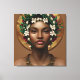 Beautiful strong African-American woman with a crown of flowers. AI generated artwork.
