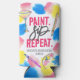 Kick off your bachelorette with a colourful paint and sip party and a cold adult beverage - and why not have a slim can cooler to keep things refreshing longer. Simply customize with your name and date of the party for a fun personal feel. Design features typography "paint sip repeat" as well as paint splatters complete with yellow, red, and blue paint splatters as well as hand painted paint palette, paint brush, and glass against a white background.