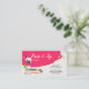 Paint and sip studios have become a fun solution for a ladies night out, bachelorette or birthday party, or just a fun get together. This business card features a white canvas background with bright paint strokes and splats. A wine glass with a paint brush mistakenly placed in stands on the right surrounded by a few paint brushes. Available with matching products.