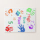 Paint Handprints Birthday with Personalized Name Jigsaw Puzzle