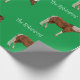 Wrap your Christmas presents in this darling personalized wrap which features a pattern of paint horses, a few who are wearing a red Santa hat.