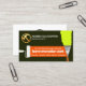 A dull dark green cover features a paint scraper peeling the wall to reveal a fresh coat of bright green. The roller brush is hard at work painting a new bright orange layer that reveals a slogan option, the business name and a list of services that you might offer. Northwards to the left corner lies a gold hammer logo you can use alongside your prestigious name and job title.