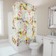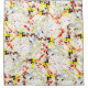 * Red, black, yellow and grey colours of paint splatter, drips and drops cover this shower curtain.