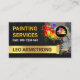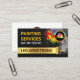 A dirty wall is splattered with paint. A gold roller brush is about to commence work and has your prestigious name. Over at the top is the business name "PAINTING SERVICES" which you can change, the phone contact and a gold "home paint fan" logo you can use.