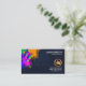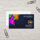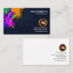 In a peeling blue paint cover, a colourful splatter covers the left wall of the card. Your details are at the opposite end with your prestigious name and job title at the top. Southwards of this are the gold logo which you can use, with the business name and contact details directly underneath.