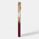 Whimsical Abstract Gold Red and Bronze Paint Strokes iPhone 14 Case with a white custom monogram template. For an added personal touch include your first and last name to the template. Give a thoughtful personalized iPhone case as a gift for Mother’s Day, birthday, graduation, etc. Personalised Monogram Initial Letter iPhone Cover with geometric elements.
