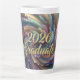 This design features the text "2026 Graduate" beautifully styled in an elegant, sparkling gold-glitter script font positioned in the very center. The background is a mesmerizing, abstract swirling vortex made of thick, expressive, painterly brushstrokes. The textured strokes pull inward toward the center, creating a dynamic sense of motion and energy. The color palette is rich and artistic, featuring a blend of jewel tones and muted rainbow shades, including deep teal, navy blue, magenta, soft peach, golden yellow, and sage green. The overall aesthetic is elegant, artistic, expressive, and celebratory.