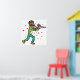 Paintball graphic shows a paintballer running through a hail of paint splats in a fun image for paintball fans.