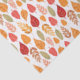 A repeating pattern of autumn leaves in shades of orange, coral, and dusty green. The leaves are all different shapes and sizes. The white background can be changed to whatever colour you like using the customize tool!