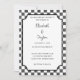 My black painted chequerboard pattern is the backdrop for these custom wedding invitations with black watercolor squares arranged in a chequered grid. Your custom wedding details appear in the centre in black lettering.