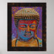 Mixed media portrait of the Buddha done by Sheryl Karas. The original painting was done mostly in acrylics on canvas in red, gold, black and blue.