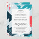 Modern abstract brush strokes in teal, aqua and coral, wedding invitation. Customize text, font style, colour and size.