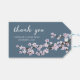 An elegant wedding invitation set featuring branches of hand-painted pink & white cherry blossoms on an ash blue background accented with modern calligraphy. Original design & illustrations by Kitty Pie Prints.