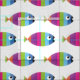 Colour fish completed in a vertical striped pattern. Shades of Orange, Purple, Green, Blue, and Black against White background. Perfect for the fish, aquarium, sea, or ocean lover in you life. Create something fabulous with the under the sea fabric pattern. Order today.