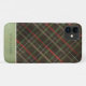 Trendy painted winter plaid pattern, personalized iPhone case. Cute watercolor plaid pattern in black, tan, red, green and silver. Features, template text space for name or phrase.