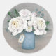 Painted Dusty Blue Mason Jar and White Flowers Classic Round Sticker